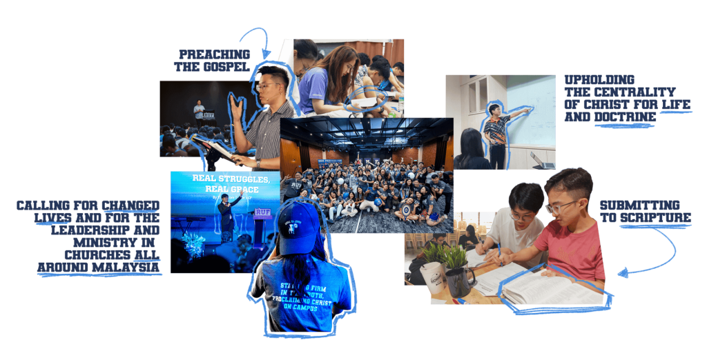 The Reformed University Fellowship (RUF) is dedicated to the mission of Jesus Christ for His church in the context of universities in Malaysia. It is not the intention of RUF to be aloof from the church, rather, ‘We are the Church going to the campus with the message of Jesus Christ’.